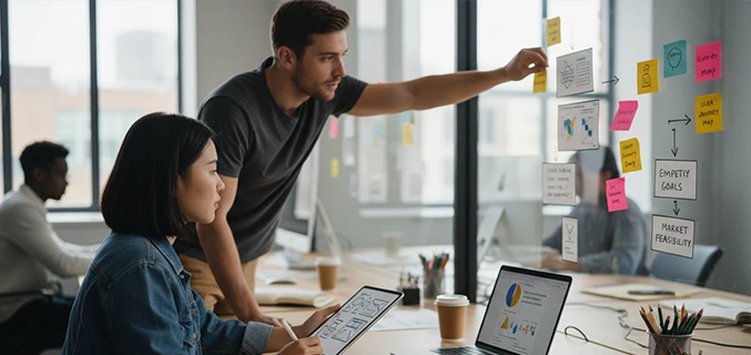 Through collaborative workshops and journey mapping, we generate solutions and refine concepts into viable strategies. Our team prioritizes ideas based on feasibility and impact, developing prototypes for early testing and validation.