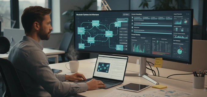 We translate strategy into actionable roadmaps with modular architecture design that defines features, security and compliance provisions, governance frameworks, and costs, ensuring every solution is built for innovation, adaptability, and scale.