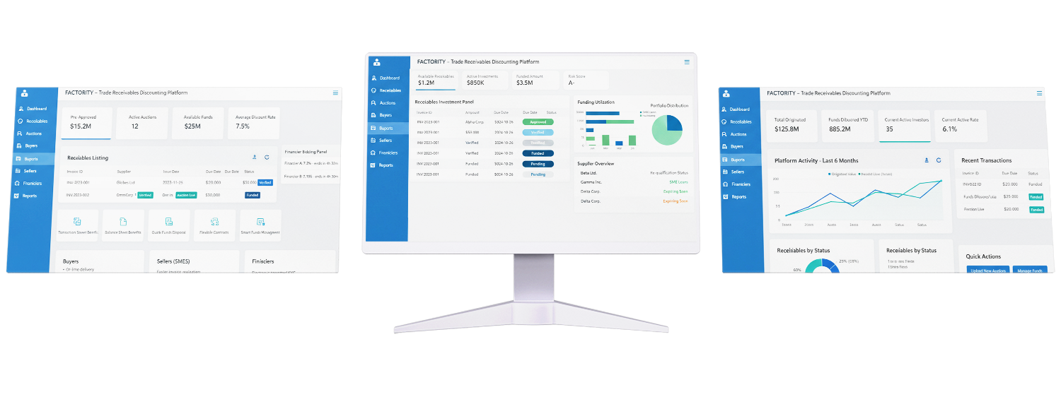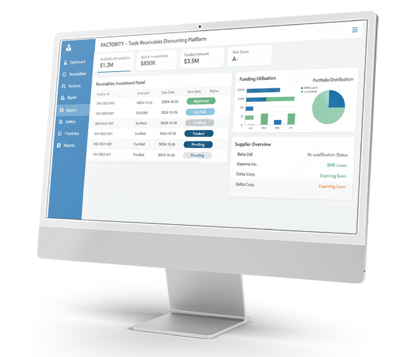 A one stop shop for financiers to invest against pre-approved receivables of authorized suppliers on boarded through re-qualification criteria.